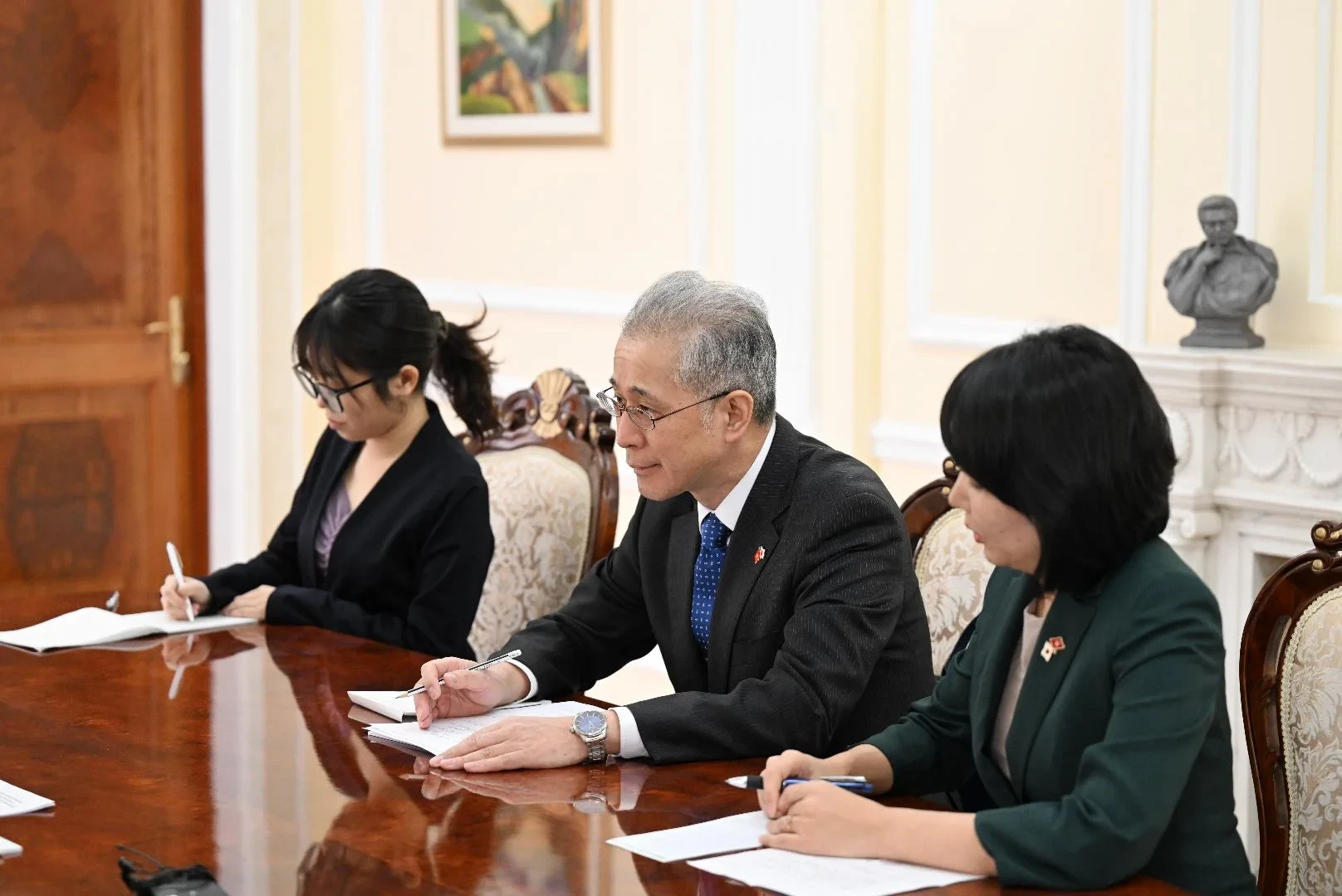 Жолугушууда кызматташтыкты бекемдөө үчүн эки тараптуу сапарлардын маанилүүлүгү белгиленди, ошондой эле быйыл Япония парламентинин башчысынын расмий сапары жөнүндө маселе талкууланды.