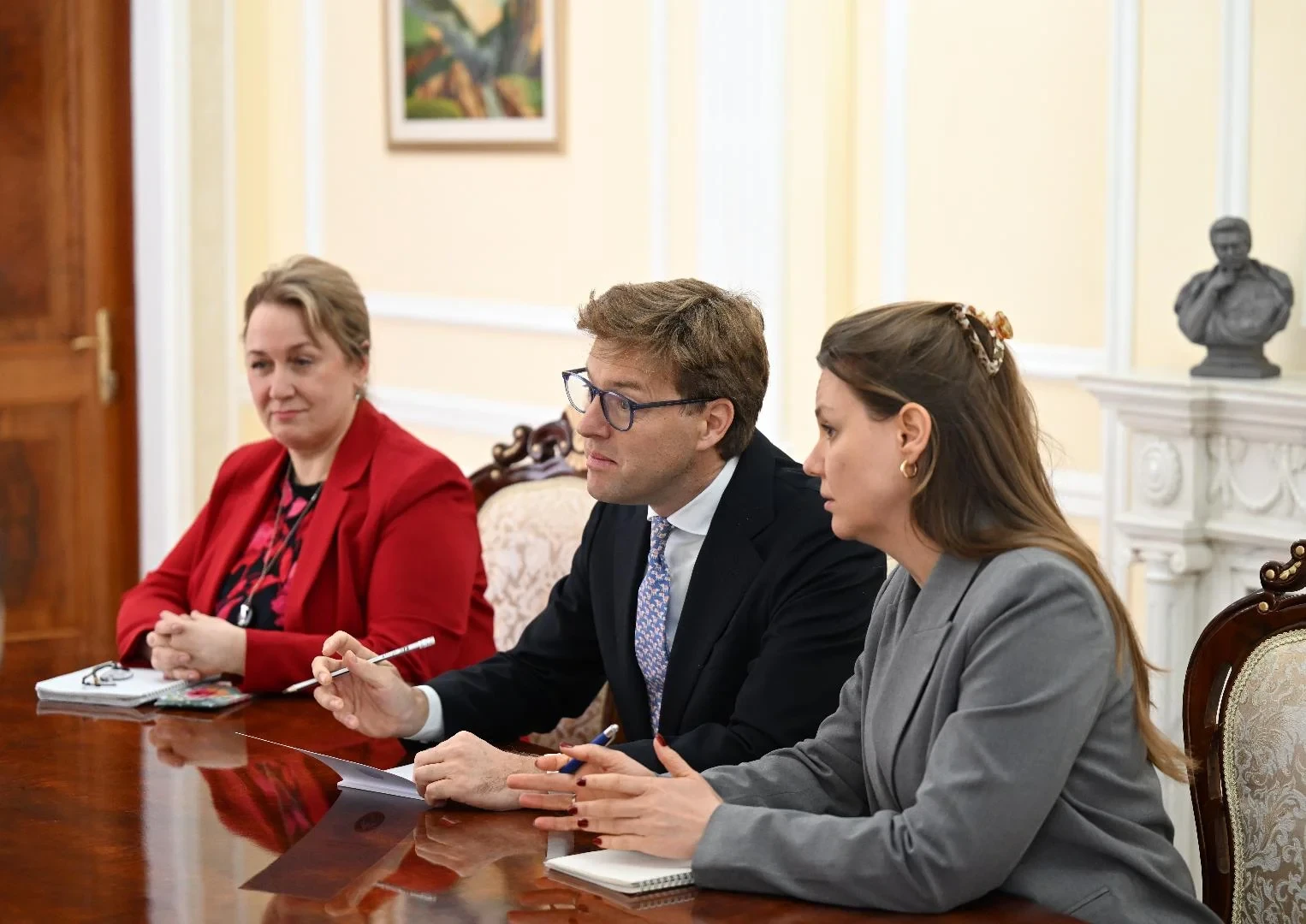 Ал экология, климаттык өзгөрүүлөр жана тоо саясатын жакшыртуу сыяктуу тармактарда кызматташууну тереңдетүүгө кызыктар экенин билдирди. Спикер Жогорку Кеңеш учурдагы мыйзам чыгаруу маселелери боюнча пикир алмашууга жана сунуштарга өзгөчө көңүл бурарын белгиледи.