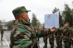 Мындан тышкары, төрага «Жетиген» согуштук даярдык борборунда окууну ийгиликтүү аяктаган жана «лейтенант» наамын алган жоокерлерди куттуктады. Ал алган наамга ылайык келүүнүн маанилүүлүгүн жана милдеттерин адилеттүү аткаруунун зарылдыгын белгиледи.