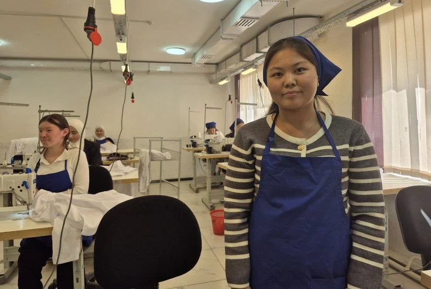 «Конструирлөө жана моделдөө» адистиги боюнча окуган студентка Сезим кубаныч менен бөлүшөт: «Мен 8:00дөн 13:20га чейин окуйм, андан кийин цехке барам. Бул жерде мен үй тапшырмамды да аткара алам. Бул жылы окуу акысы 25 миң сом болду, мен аны өзүм төлөйм.»