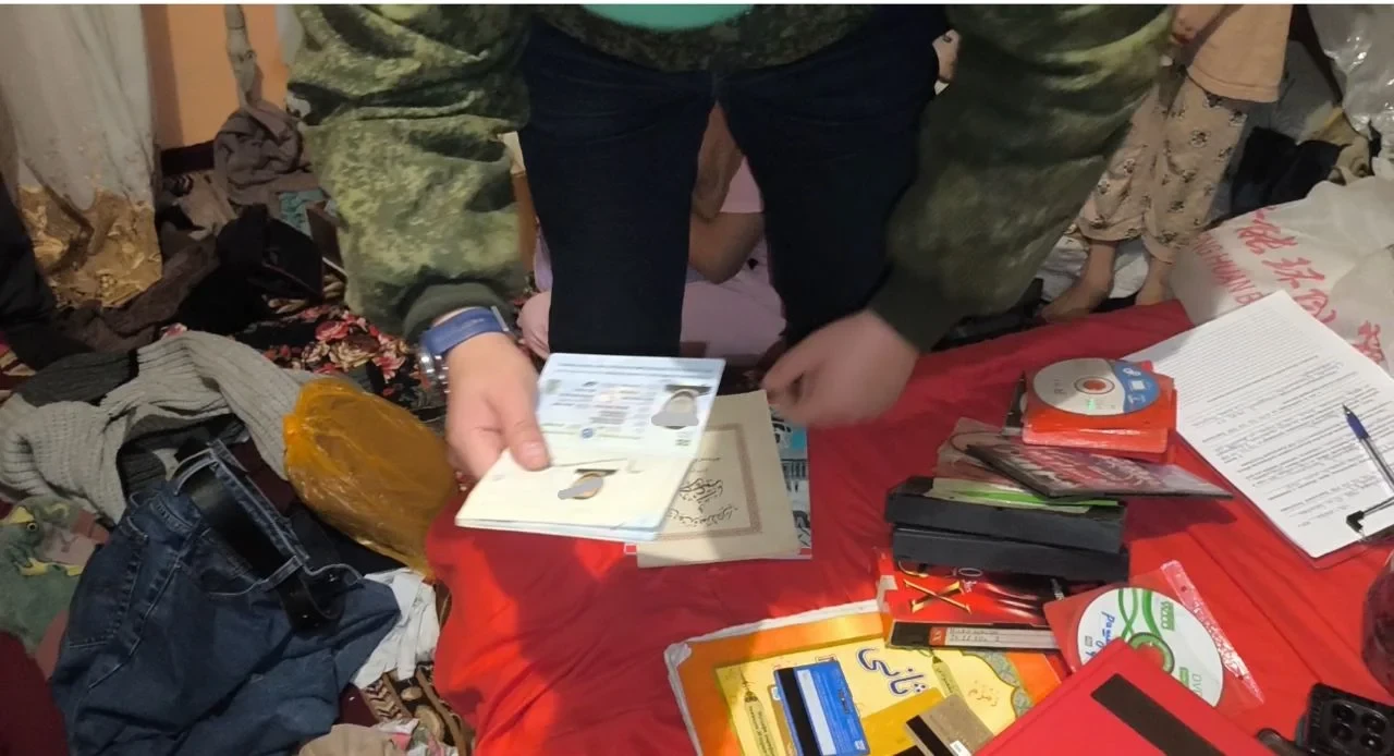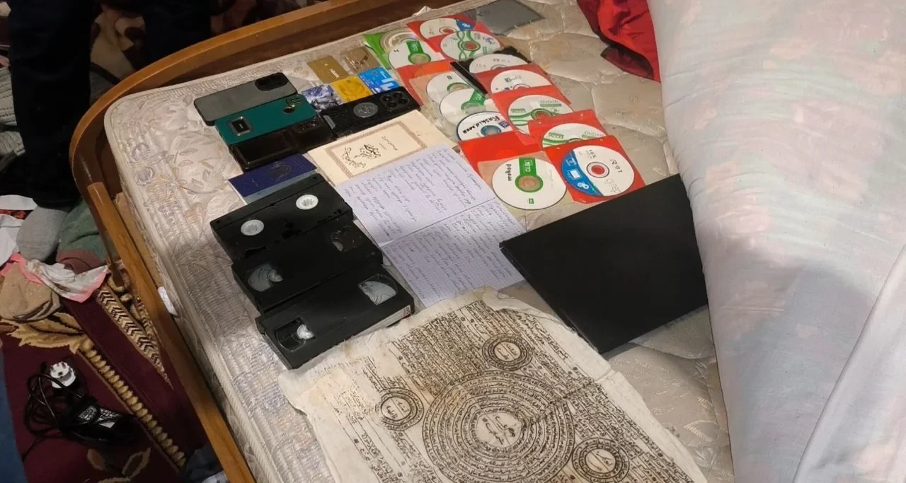 Кармалгандардын жашаган жерлеринде жүргүзүлгөн тинтүү учурунда тыюу салынган китептер, адабият, ноутбуктар, флешкалар, мобилдик телефондор жана катуу дисктер сыяктуу электрондук жабдыктар табылган. ```