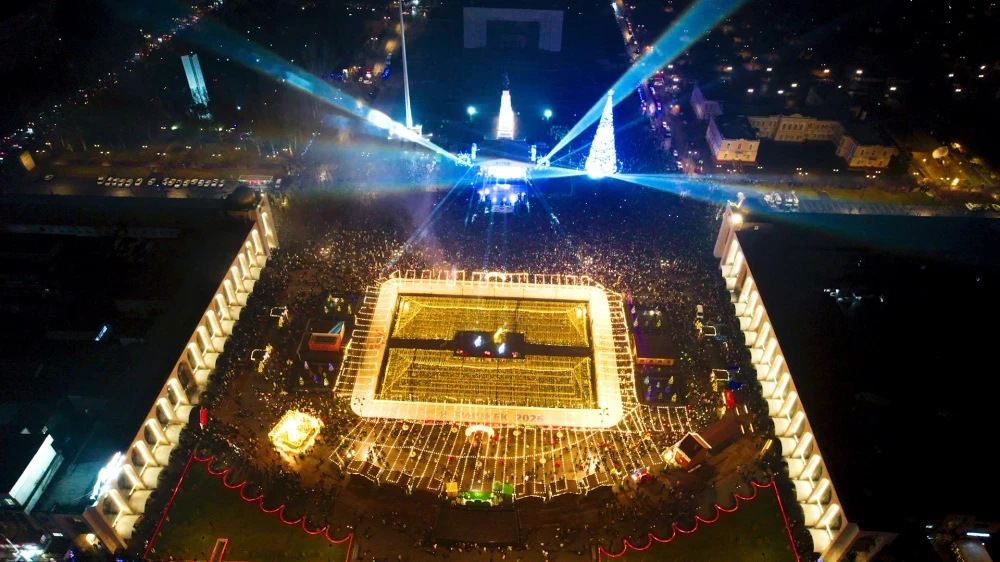 Таласта жаңы жылдык шыршанын ачылышы борбордук аянттын реставрациясынын аякташы менен дал келип, жаңы түшкөн кар майрамдык атмосферага жандандырып жатат.Ош жана анын жаңы жылдык шыршасы