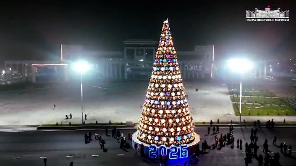 Мэриянын маалыматына ылайык, "2025-жылы Бишкектин негизги жаңы жылдык шыршасы минималисттик дизайнда жасалган. Шырша классикалык конус формасында жана кара-жашыл түстөгү жука жасалма чыршыт менен кооздолгон".
