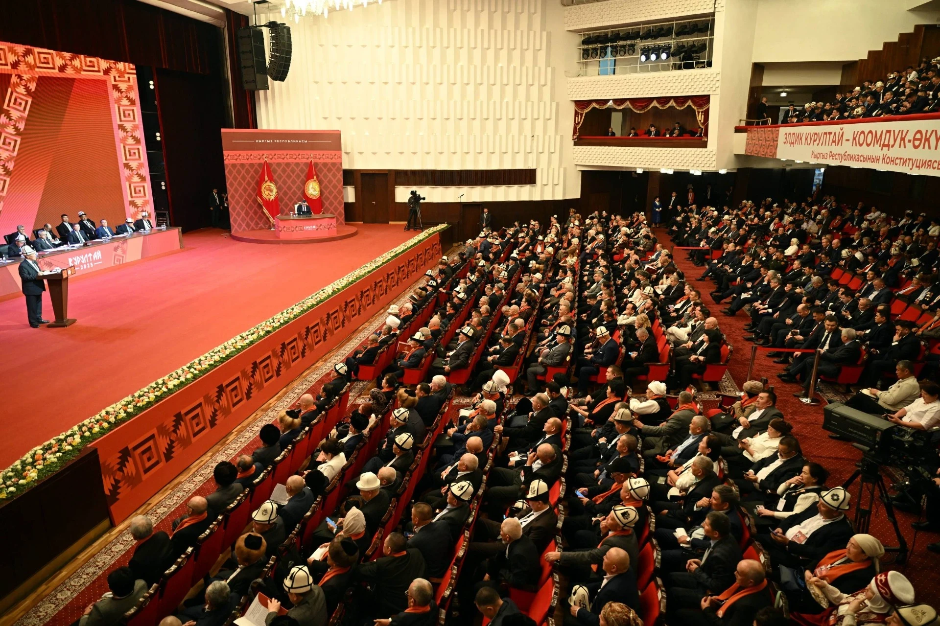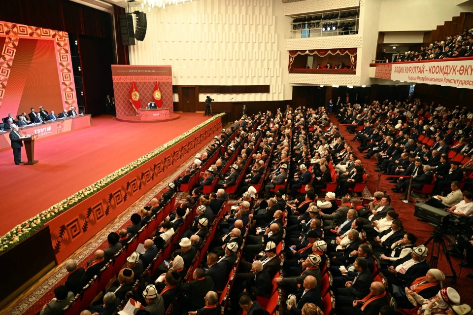 Бишкекте, Кыргыз улуттук филармониясы Токтогул Сатылганов атындагы, IV Элдик курултай өтүп жатат,...