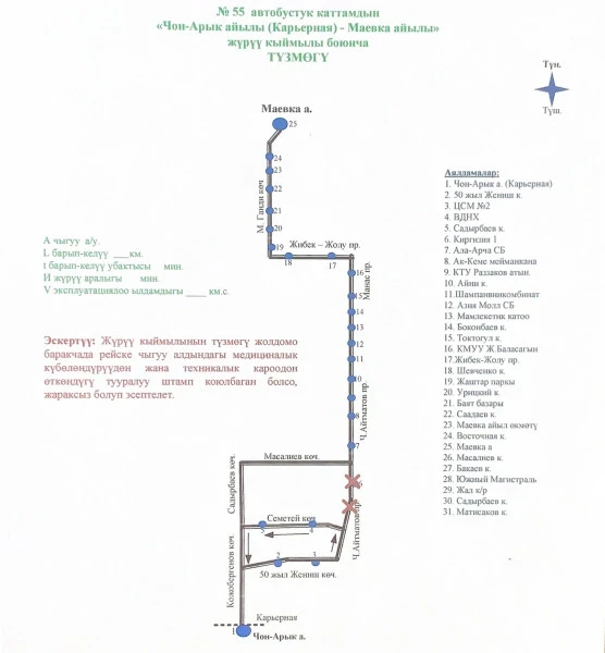 Автобус №55 маршрутунун схемасы: