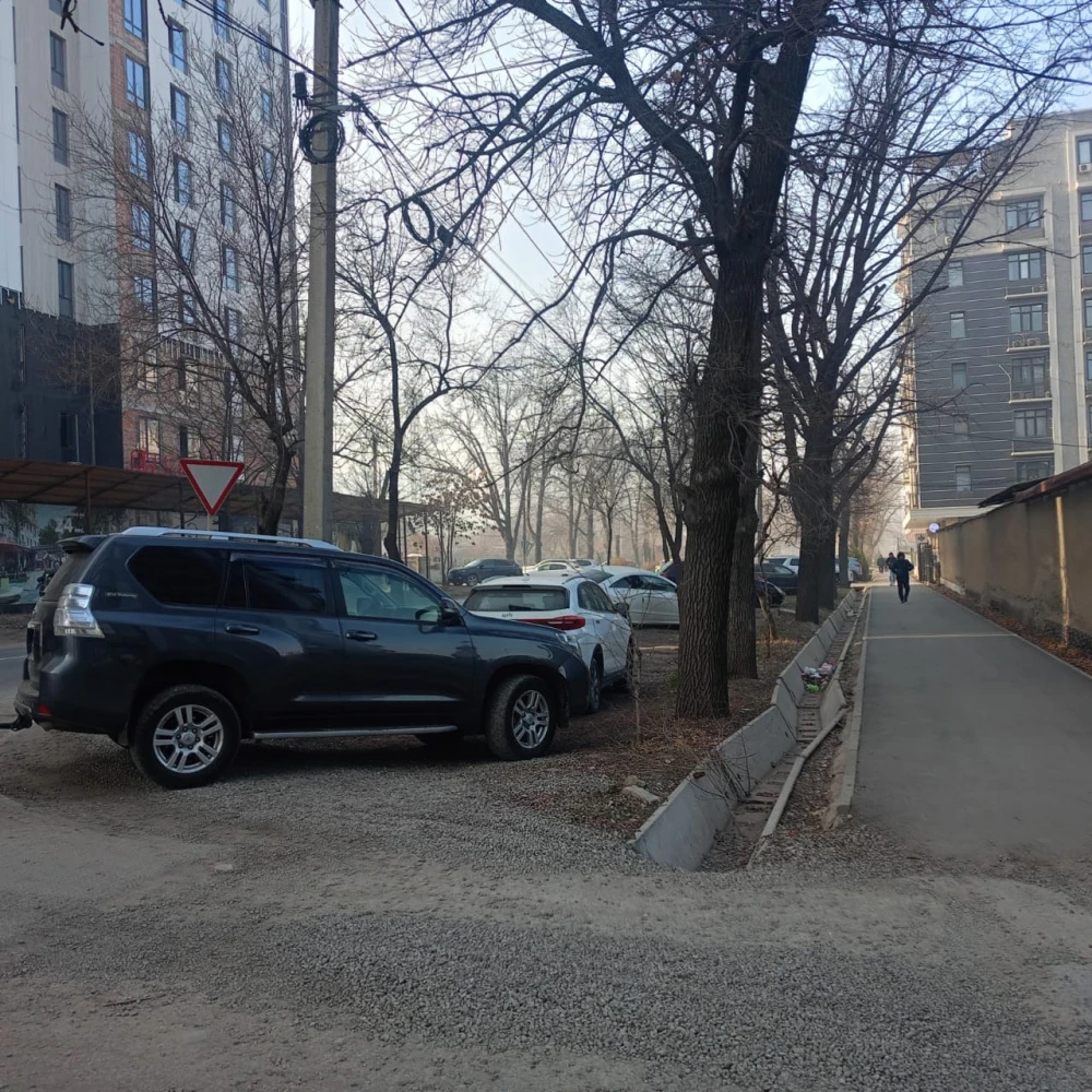 Стихийлуу токтотуучу жайлар жашыл аймактардын ордуна. Шаардыктар Айни көчөсүнө көңүл бурууну суранышты