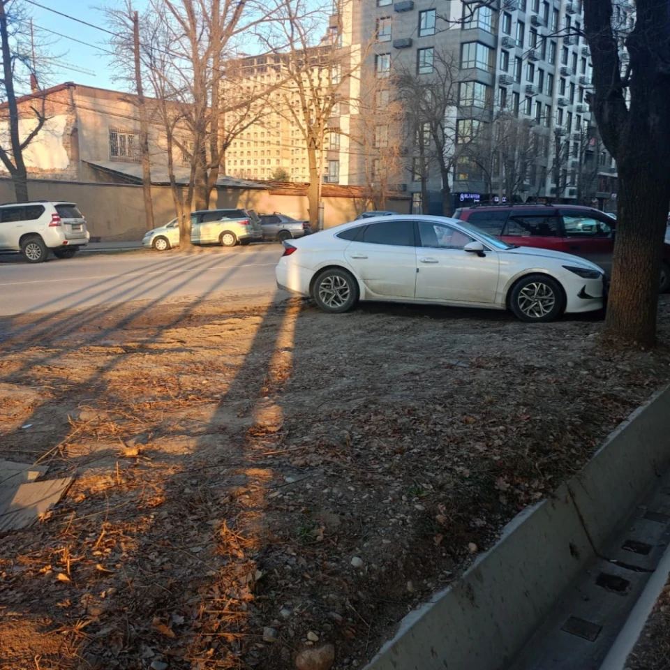"700-800 метр узундуктагы бөлүктө жашыл зоналар жана газондор дээрлик жок, анткени автоунааларды токтотуу өзүнчө болуп жатат. Жашылдандыруу үчүн белгиленген участктар автоунааларды токтотуу үчүн колдонулууда", - деп бөлүшүшөт.