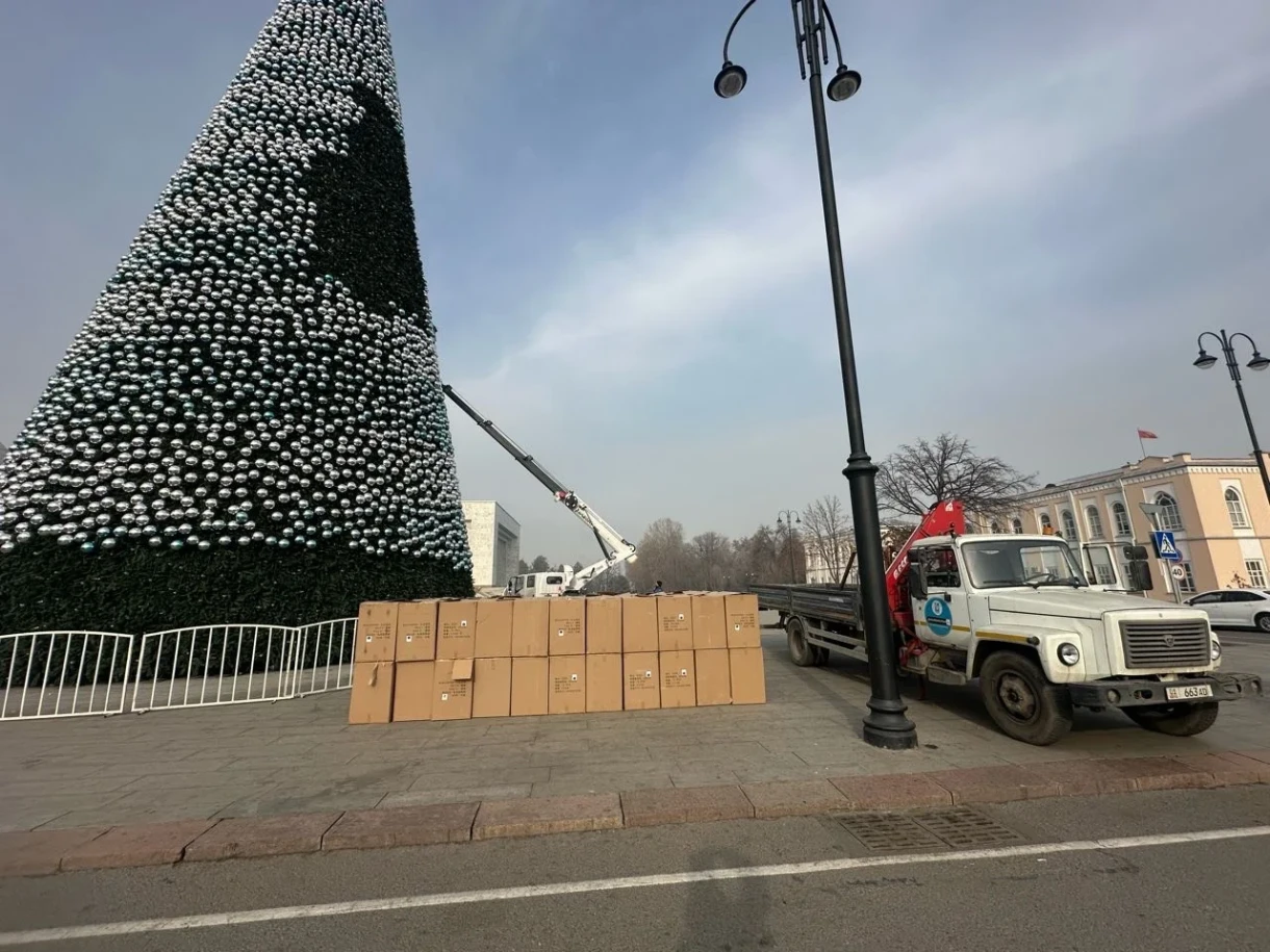 Бишкекте Ала-Тоо аянтында өлкөнүн башкы жаңы жылдык шырдагын демонтаждоо башталды
