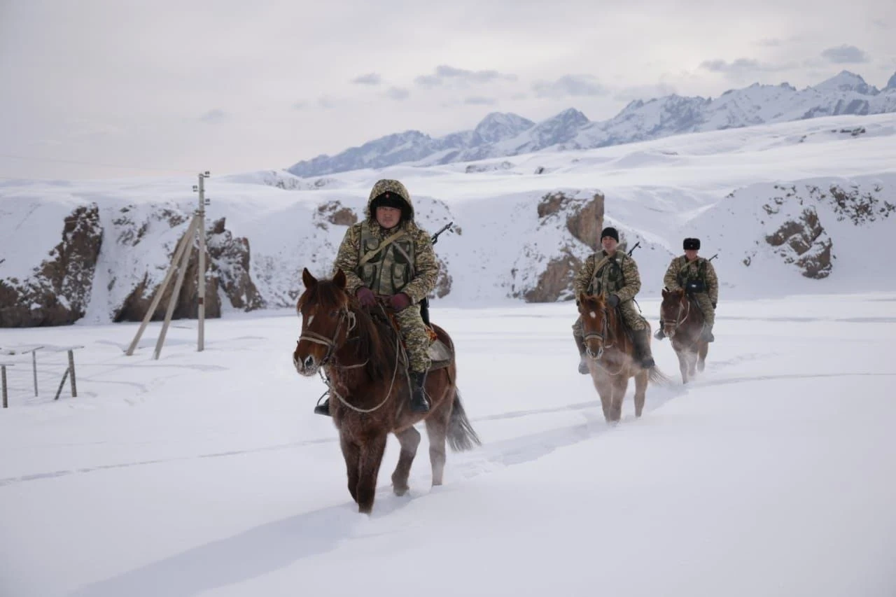 Катаал шарттарга жана күчтүү суукка карабастан, Чек ара кызматынын аскер кызматкерлери өз постторунда сутка бою кызмат өтөшүүдө.