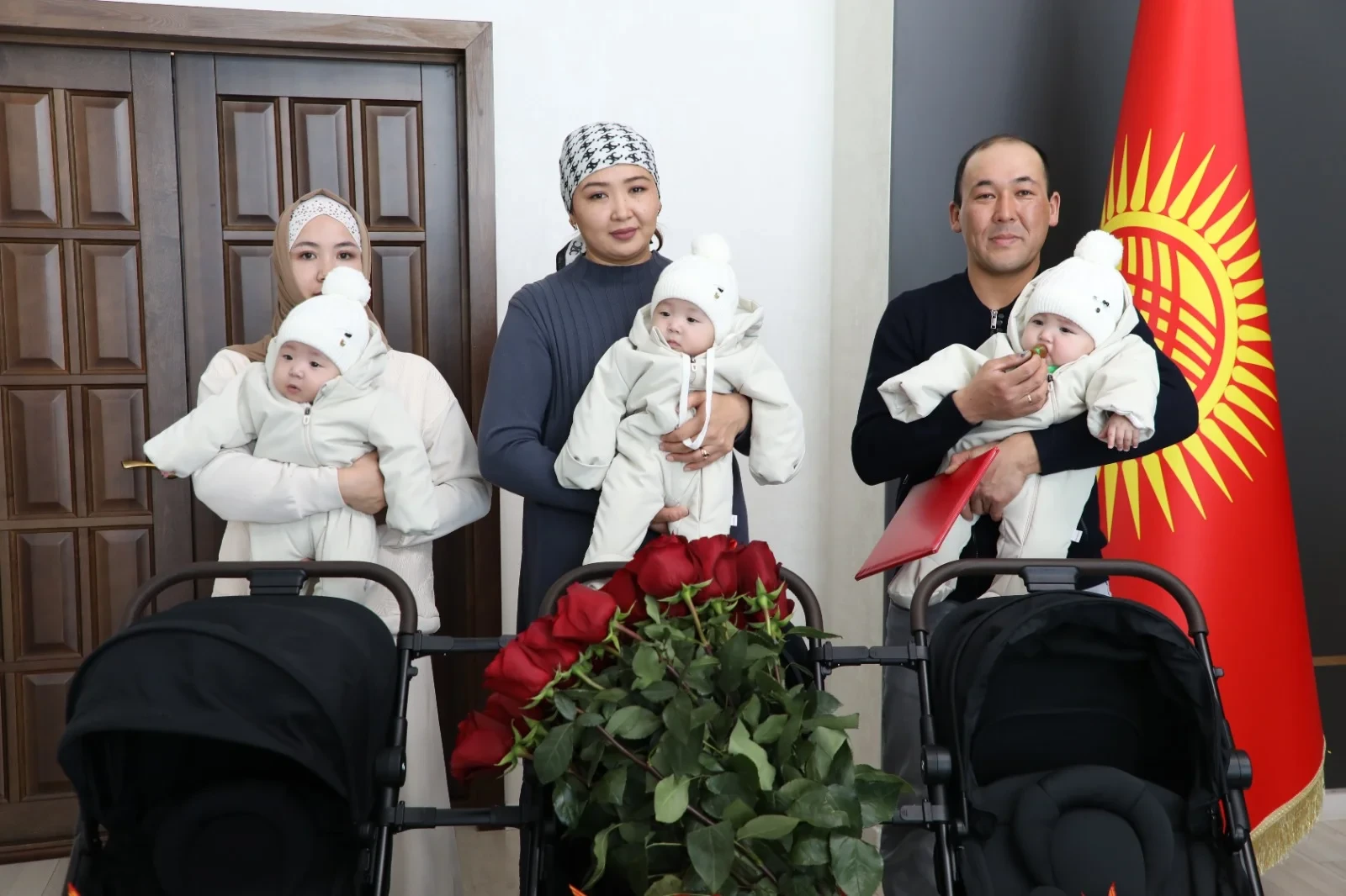 Өкмөттүн орун басары жана Кыргызстандын Улуттук коопсуздук комитетинин төрагасы Камчыбек Ташиев, жакында үч эм төрөлгөн жаш жубайларга эки бөлмөлүү батирдин ачкычтарын тапшырды.