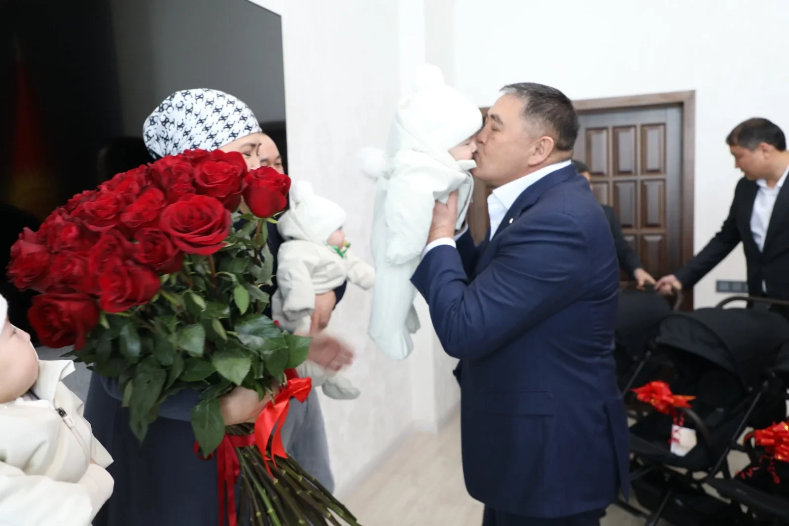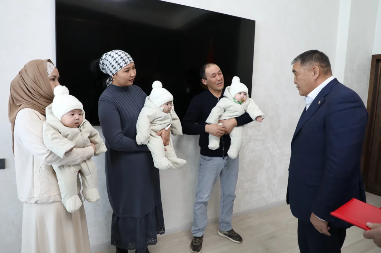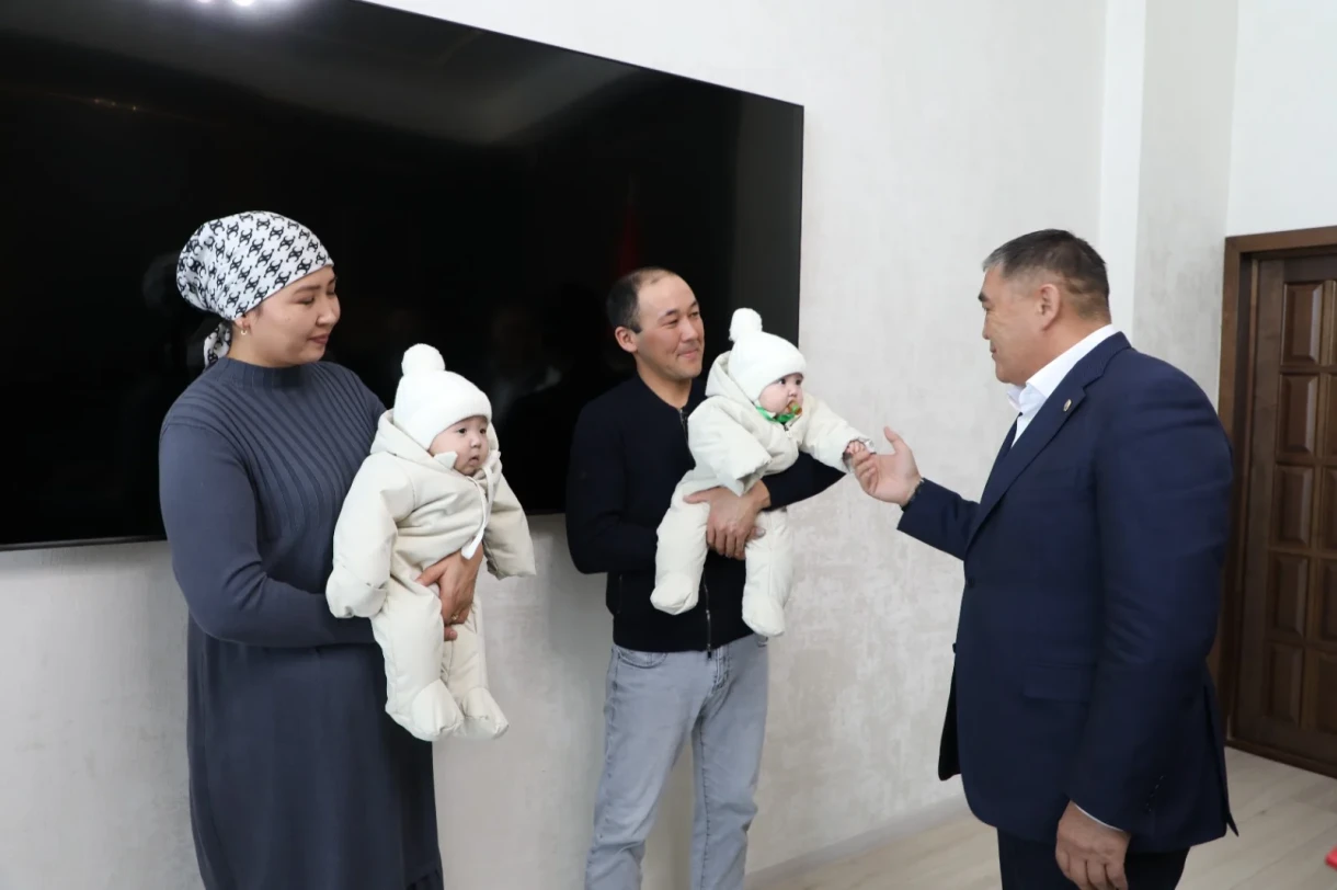 Үч эмдин туулушу менен өлкөдөгү демографиялык абалды колдоо максатында, Камчыбек Ташиев үй-бүлөгө Бишкектин борбордук бөлүгүндөгү жаңы батирдин ачкычтарын тапшырды.