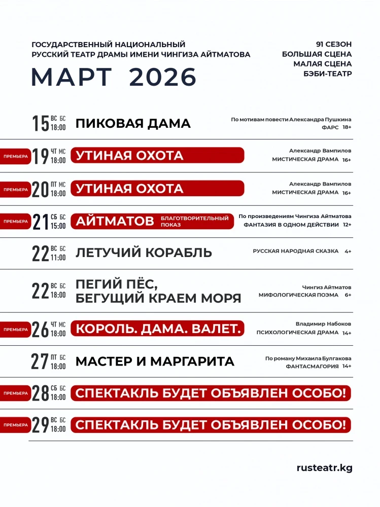 Театрдын 2026-жылдын март айына программасы.