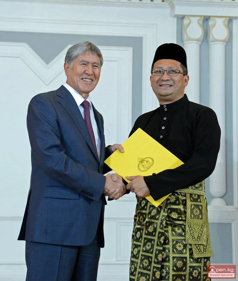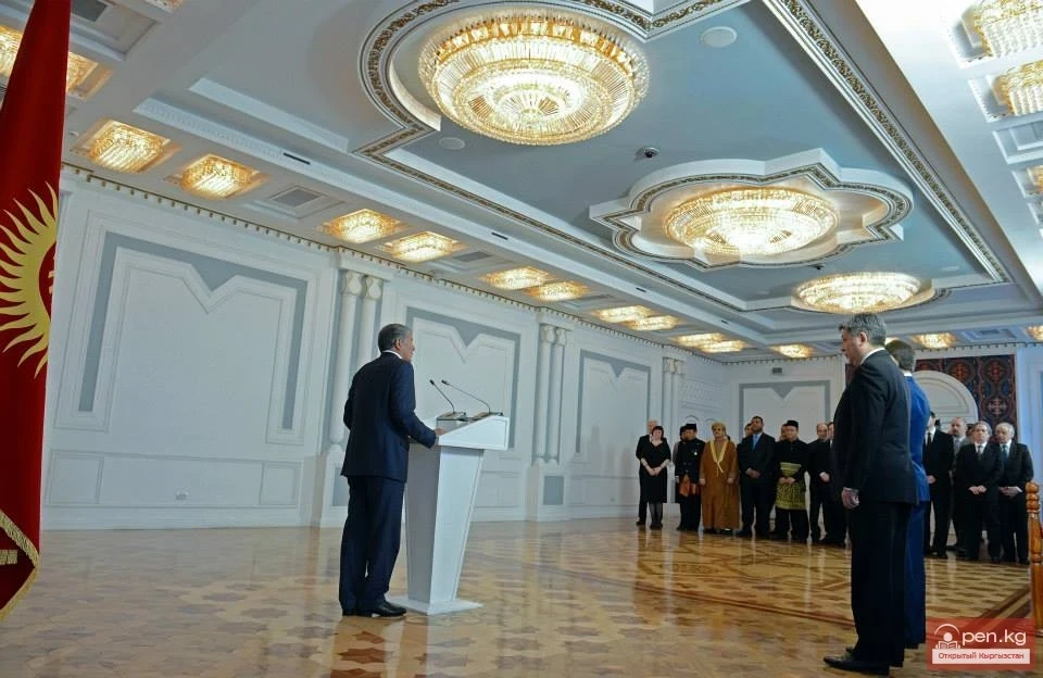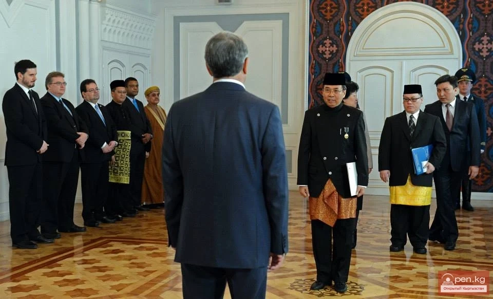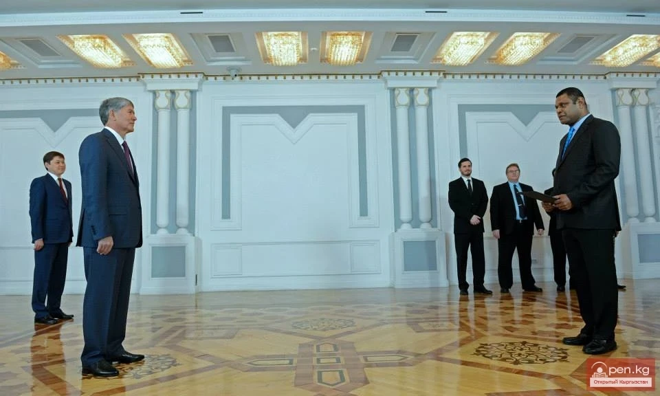 Президент Алмазбек Атамбаев дипломатиялык миссиянын башчыларына өз ишмердүүлүгүндө Кыргыз Республикасынын Президентинин Аппараты жана Кыргыз Республикасынын Өкмөтү, Кыргыз Республикасынын Жогорку Кеңеши тарабынан ар тараптуу колдоо жана жардам көрсөтүлөрүн кепилдеди.