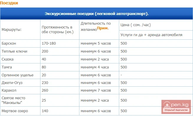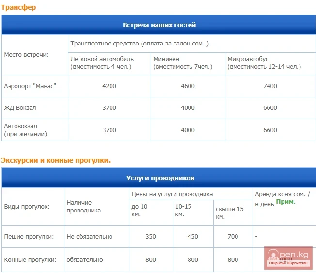 Биз сиз үчүн Прииссык-Кульдагы жаратылыш корууларында кызыктуу экскурсияларды уюштурабыз. Биздин кызматтардын бааларын бул жерден көрө аласыз, ошондой эле биздин ашканабыз жана даярдаган тамактарыбыз тууралуу маалыматты окуй аласыз.