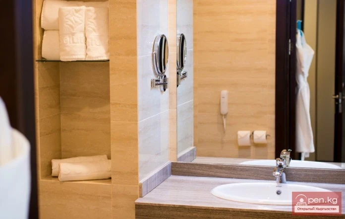 Номурда бардык шарттар менен чоң санитардык узел бар. Санитардык узелде халаттар, фен, чоңойтуп көрсөткөн айнек, дене, кол жана бут үчүн сүлгү, жеке гигиена каражаттары берилген. Ошондой эле санитардык узелде телефон бар.