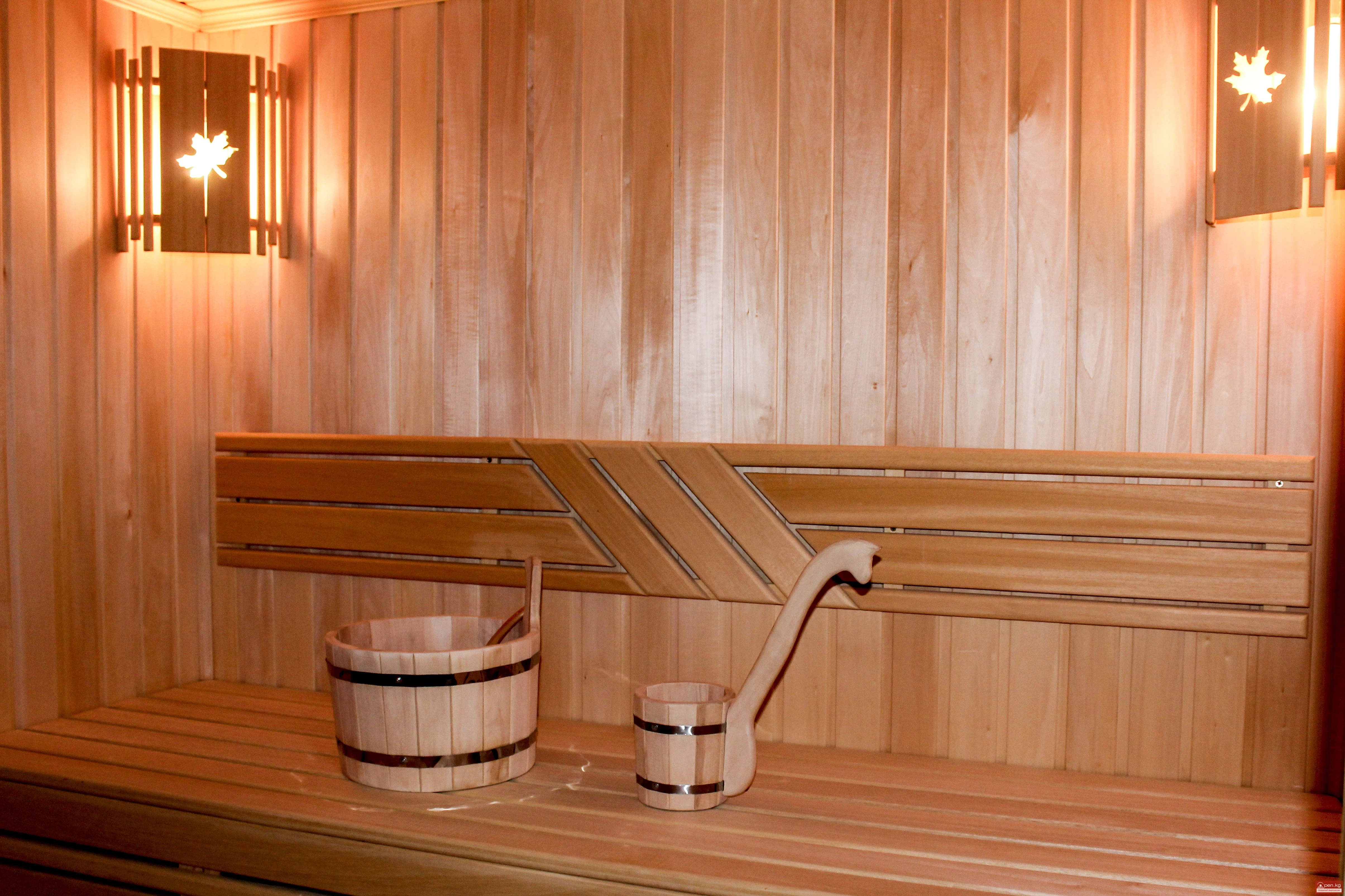 Сауна жана массаж. СПА салондо сиз чын эле ысык бууда эс алып, толук калыш үчүн бир нече түрдөгү массажды ала аласыз, азыркы дүйнөнүн чыр-чатагынан чыгып. Саунадагы мыкты парилка жакшы тердеп, организмдеги шлактарды чыгарууга жардам берет. Парилка ошондой эле ден соолукка пайдалуу, анткени ал суук тийүүдөн жана башка оорулардан сактанууга жардам берет. Дем алуу бөлмөсү телевизор жана жатып эс алуу үчүн орундар менен жабдылган, ал жерде сиз парилканы көрүп, кызыктуу көрсөтүүлөрдү көрүп эс ала аласыз.