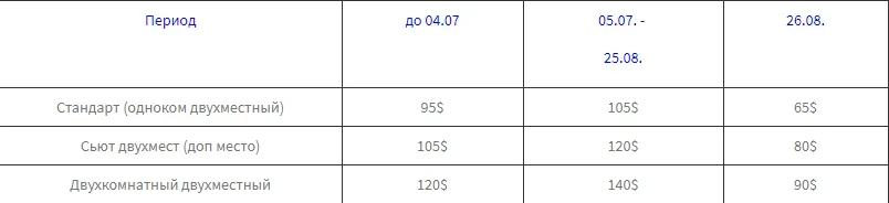 Номердин баасы 3 жолу тамактанууну эске алуу менен берилген.