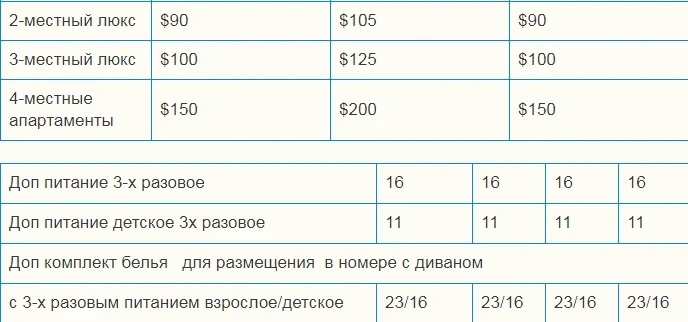 Балдар: 3 жашка чейин орун берилбестен акысыз жайгашат.