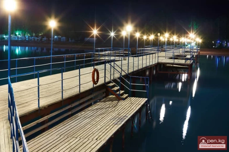 Пляж: өзгөчө, кумдуу, 150 метр алыстыкта. Пансионаттын пляжында эс алуучуларга шезлонгдор, күндөн коргоочу шатыралар, банан тебүү, парасейлинг, катамарандарды ижарага алуу, скутерлерди ижарага алуу, шезлонгдор, пляждык волейбол үчүн тор берилет. Көлдүн жээги кумдуу, түбү - кичинекей галька жана чиркегич менен. Узун жарык пирс, кемелер үчүн причал, отургучтар жана сууга түшүү үчүн баскычтар менен жабдылган.