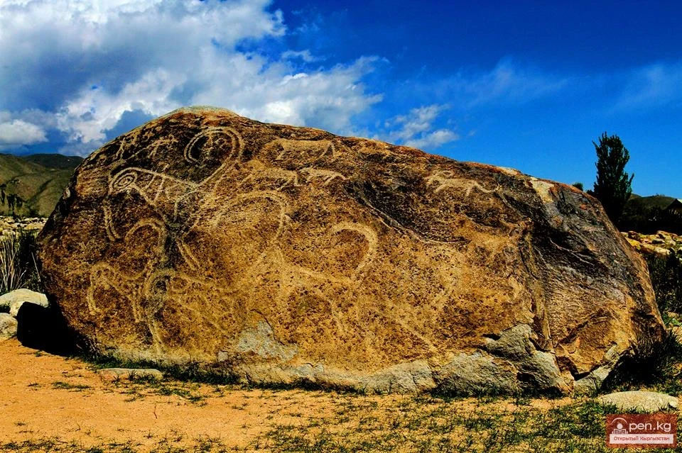 Бул бардык өзгөчөлүктөрдүн жыйындысы музейдин төмөнкү бөлүгүндө жайгашкан борбордук петроглиф болуп саналат. Алдыңкы планда тоо текелери (тоо-теке же ibex) сүрөттөлгөн. Тоо текелеринин фигуралары, балким, Борбордук Азиядагы эң чоңу, кыймылда жана өзгөчө экспрессия менен көрсөтүлгөн.