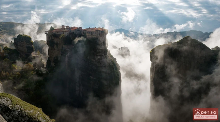 Метеора монастырлары Грециянын эң көрүнүктүү туристтик жайларынын бири. Бул жер грек тилинде «Метеора» (Μετέωρα) деп аталат, бул «абада илип турган» дегенди билдирет, бул алты керемет грек православие монастырларын жакшы сүрөттөйт. Песчаный чокусу биринчи жолу 11-кылымда византиялык отшельниктер тарабынан ачылган, алар асманга көтөрүлүп, Кудай менен жалгыз калуу үчүн чокуга чыгышкан. Чыныгы монастырлар 14-15-кылымдарда, туруктуулук жана отшельник идеалдарынын кайра жаралуусу учурунда курулган.