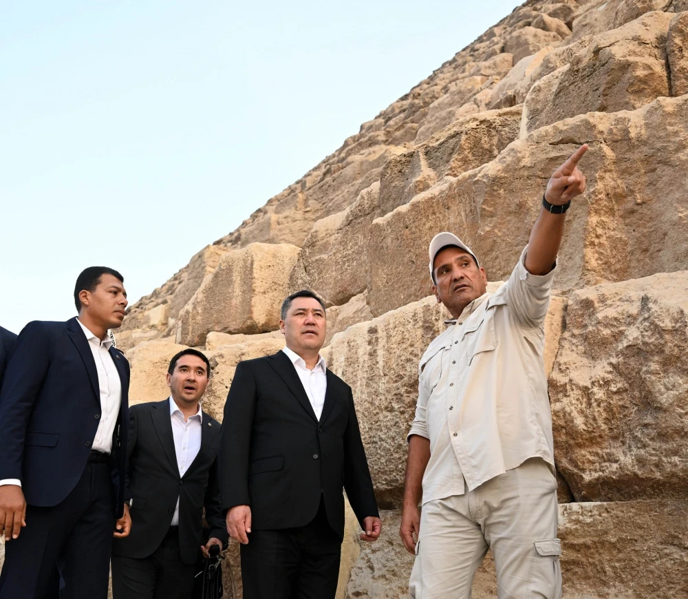 Экскурсия учурунда мамлекет башчысына пирамидалардын байыркы цивилизациянын символу жана дүйнөлүк маданий мурастын маанилүү элементи катары мааниси тууралуу маалымат берилди.