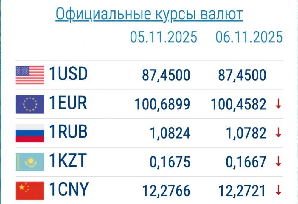 Курс доллара составляет 87,45 сома, в то время как цены на евро и рубль продолжают снижаться.