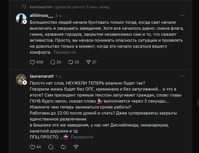 В тот же вечер мэрия Бишкека сообщила, что все электроприборы в кафе, ресторанах и ночных клубах, включая плиты и обогреватели, должны быть отключены после 22:00.