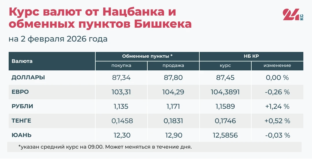 Согласно информации, предоставленной Национальным банком Кыргызстана и обменными пунктами Бишкека, наблюдается рост официальных курсов российского рубля и казахского тенге, в то время как евро и китайский юань теряют в цене. Курс доллара остается на месте.