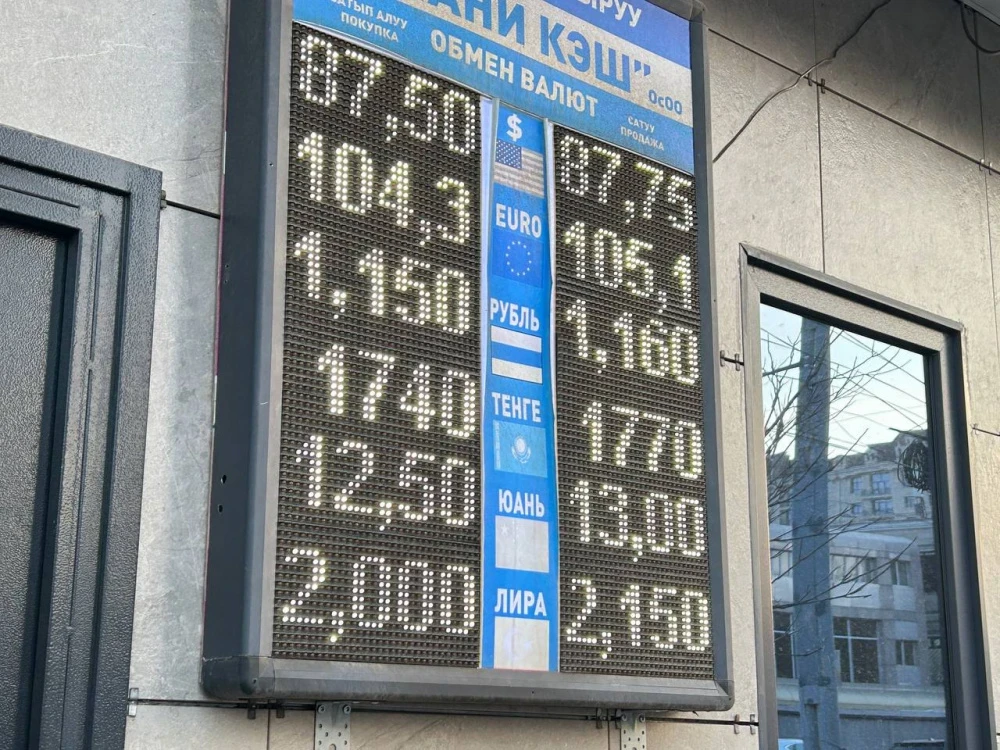 В то же время, стоимость евро увеличилась: его цена составляет 103,7-104,3 сома на покупку и 104,5-105,1 на продажу.