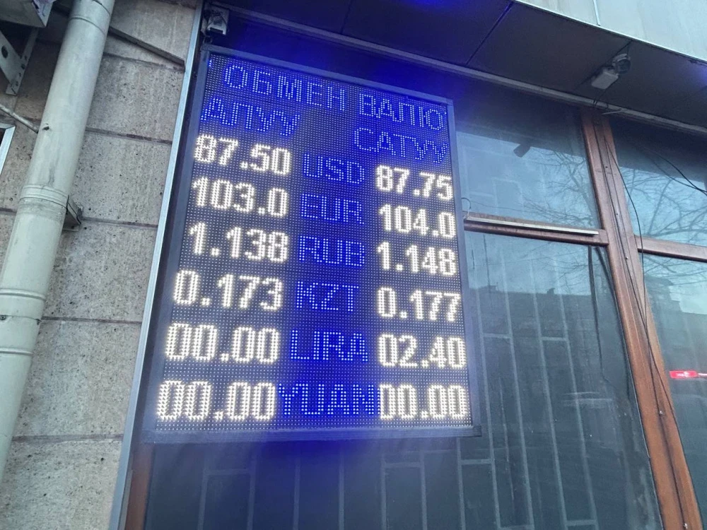 Рубль также продолжает дешеветь. Его курс покупки составляет 1,13 сома, а продажи — 1,14.