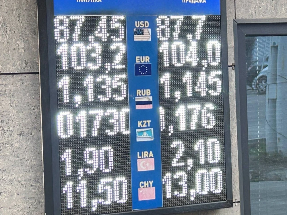 Стоимость евро немного снизилась: его покупка осуществляется по цене 102,5-103,2 сома, а продажа — по 103,5-104 сома.