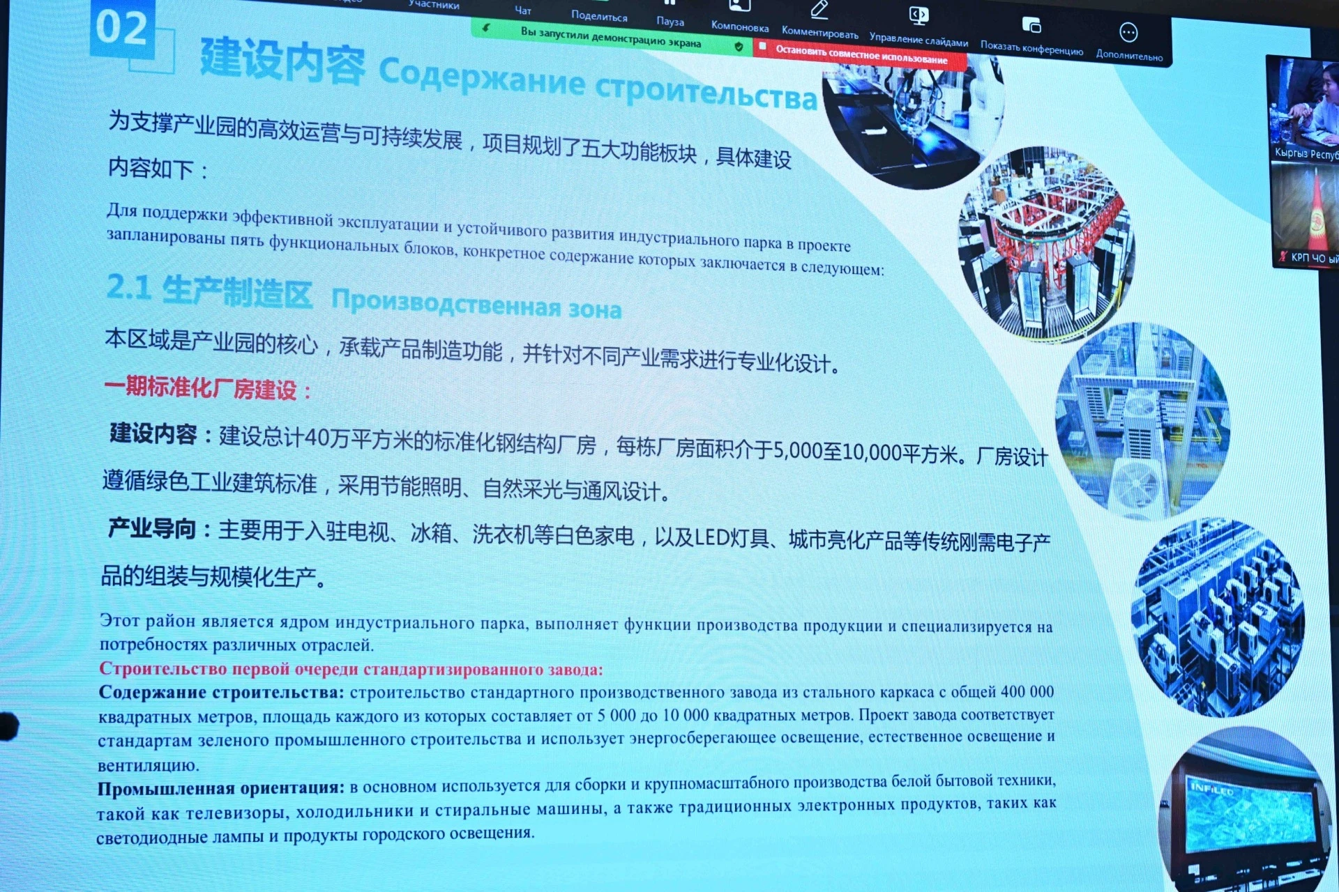 Китайская компания имеет значительный опыт в строительстве индустриальных парков, и кыргызская сторона выразила интерес и готовность оказывать необходимую поддержку в реализации проекта.