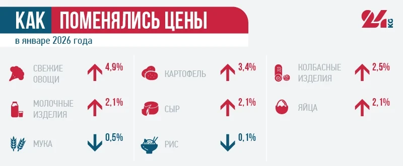 Анализ показывает, что с начала нашего мониторинга в конце октября 2018 года цена продуктовой корзины возросла на 4 068 сомов. С начала 2026 года она увеличилась на 615 сомов, а по сравнению с аналогичным периодом 2025 года — на 1 272 сома.