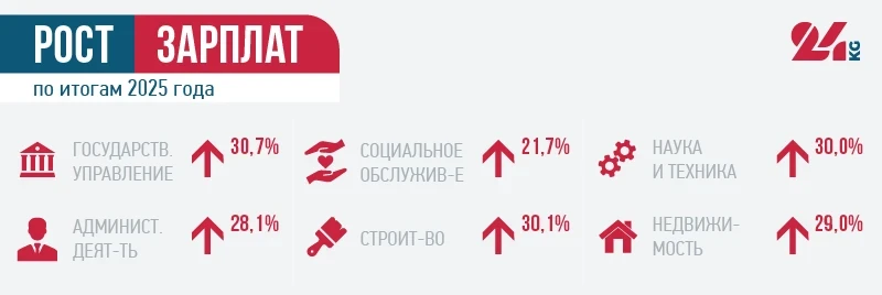 По данным Нацстаткома, в 2025 году среднемесячная номинальная зарплата в Кыргызстане выросла на 18,9% по сравнению с 2024 годом.