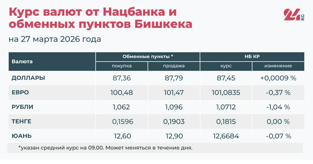 - Официальный курс НБ КР: 12,6684 сома (снижение на 0,07 процента).
