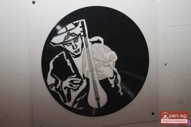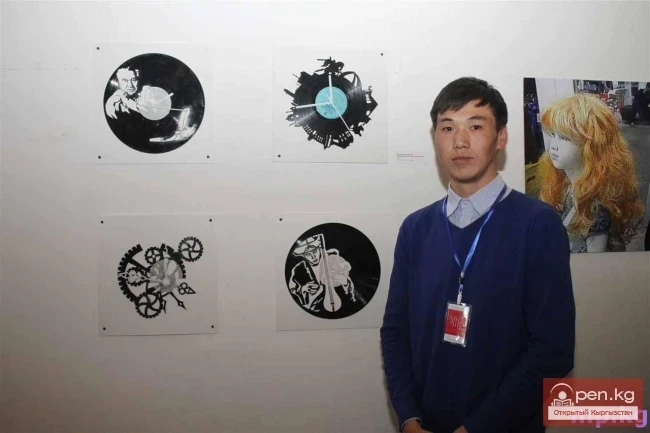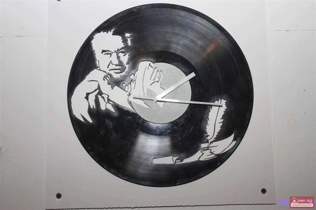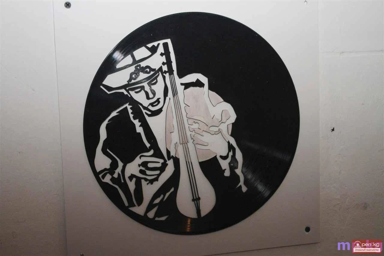 Удивили гостей выставки и часы из обычных виниловых пластинок. Автор Толонбай Абдыкадыров увидел технику изготовления работ из интернета и добавил в них местный колорит.
