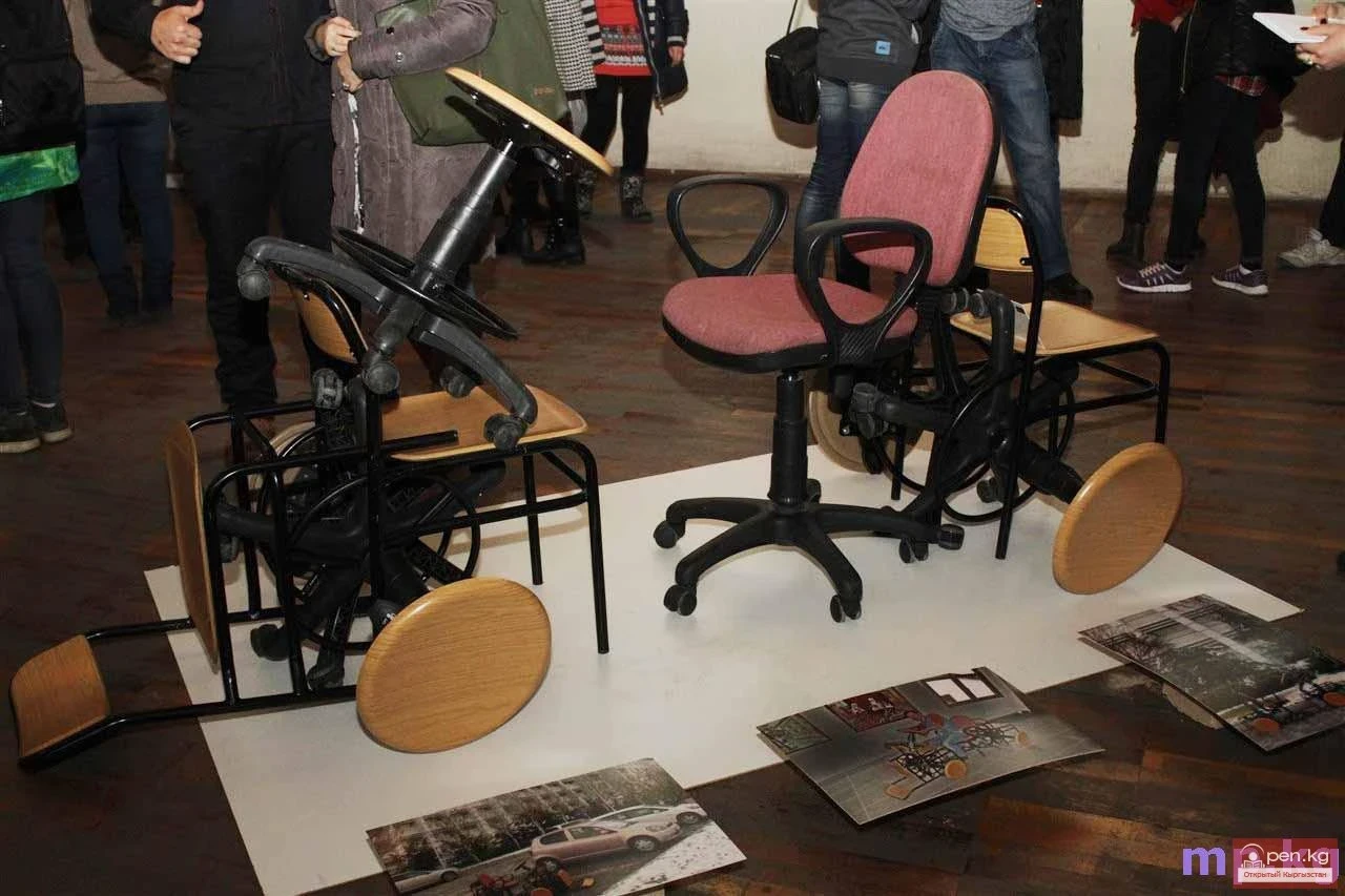 - Эта работа создана из простых вещей, которые мы используем в повседневной жизни. Здесь используются табуретки и кресла, и я хотел показать людям, что из повседневных вещей можно создать то, что может повлиять на наше сознание, воображение и окружающий мир. Создали автомобиль, мы выносили его на улицу, ставили его на стоянки и удивляли людей. Мы так сконструировали модель, для того чтобы она была похожа на бульдозер, - рассказал участник проекта Рыспек Шаршеев.