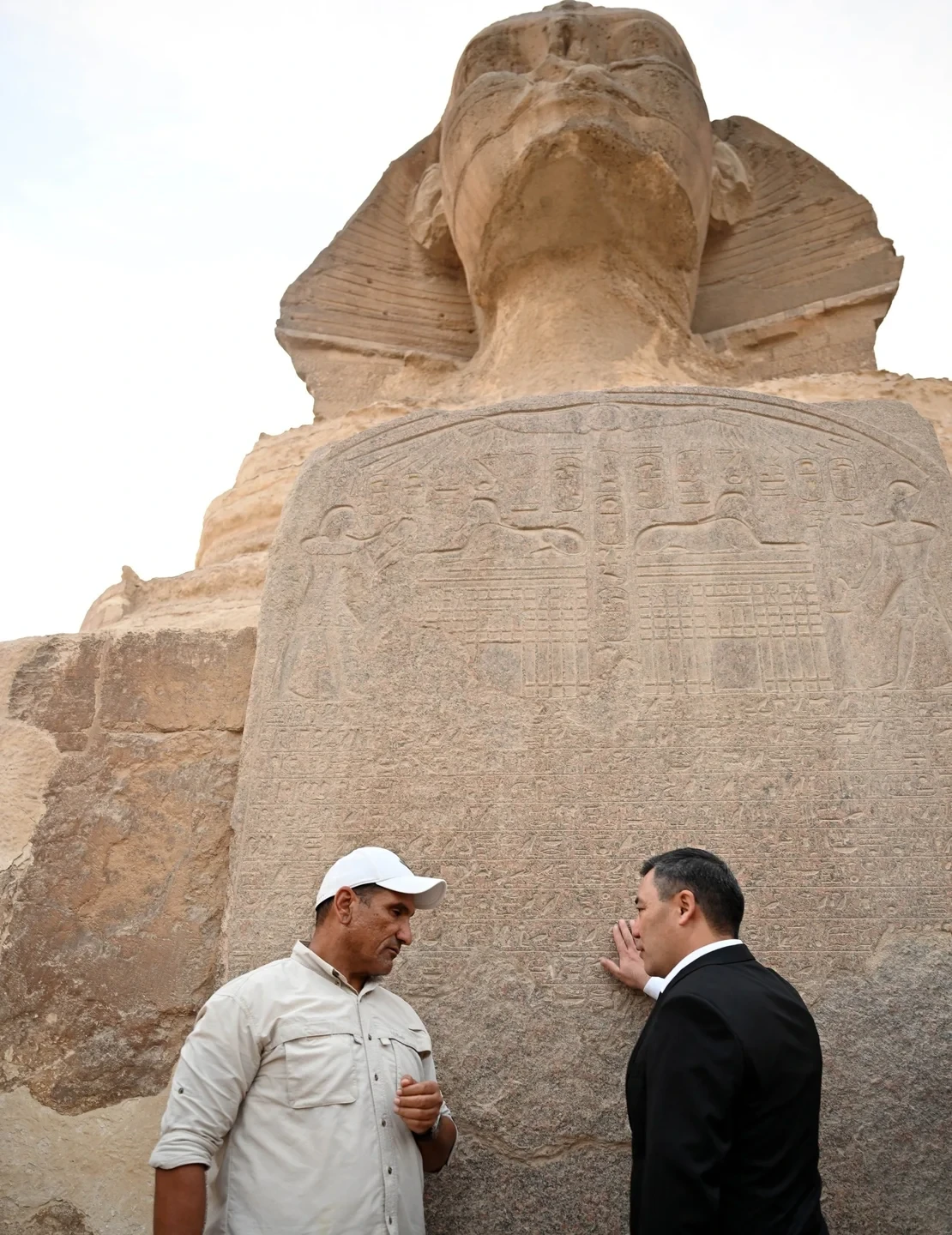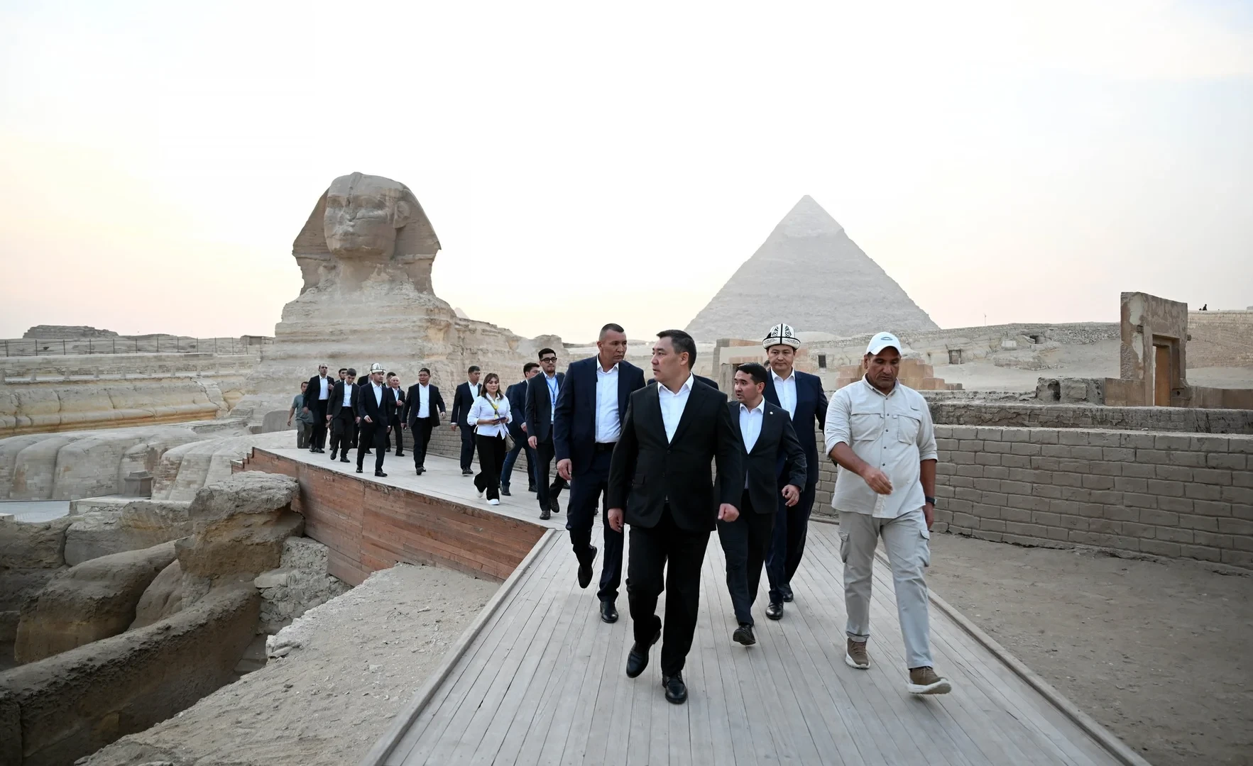 В ходе своего официального визита в Египет, президент Кыргызстана Садыр Жапаров посетил знаменитые пирамиды на плато Гизы, которые являются одним из семи чудес Древнего мира. Во время экскурсии ему рассказали о процессе строительства этих величественных сооружений, символизирующих инженерное мастерство Древнего Египта. Также президент смог войти в пирамиду Хеопса, самой крупной и древней из трех основных пирамид, построенной около 2600 года до н.э. в качестве гробницы для фараона Хеопса.