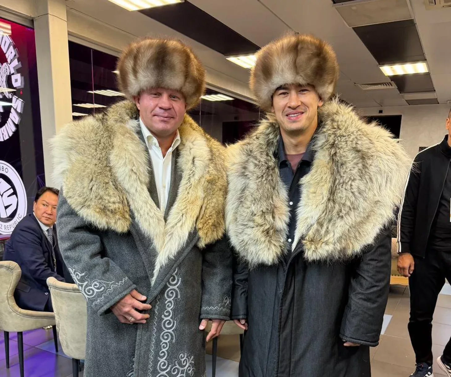 На фотографии Бивол и Емельяненко выглядят очень колоритно в кыргызских нарядах.