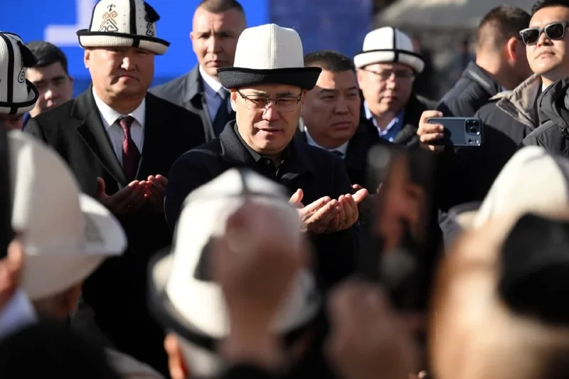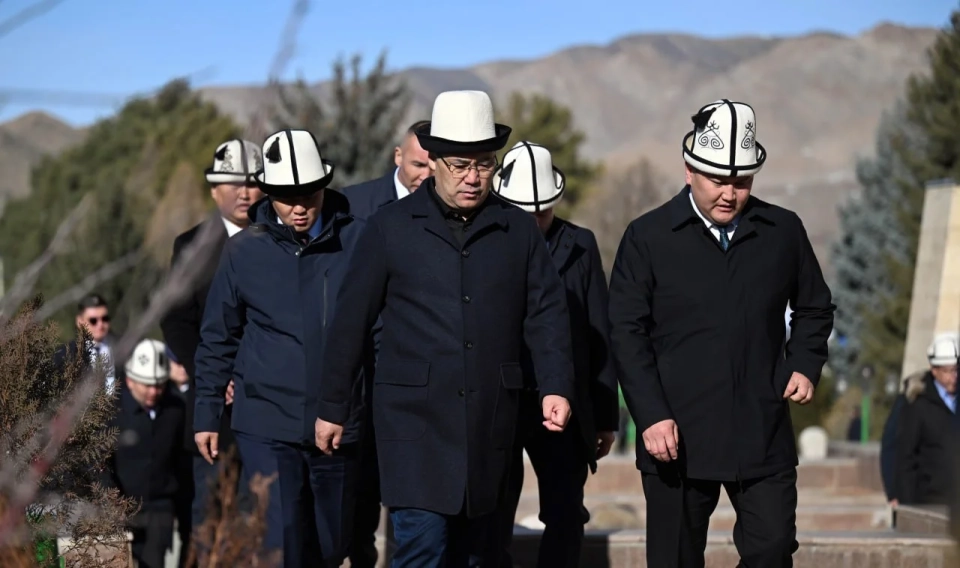 13 ноября Президент Кыргызстана Садыр Жапаров в рамках своей рабочей поездки в Таласскую область принял участие в церемонии закладки капсулы для реконструкции национального комплекса «Манас Ордо».