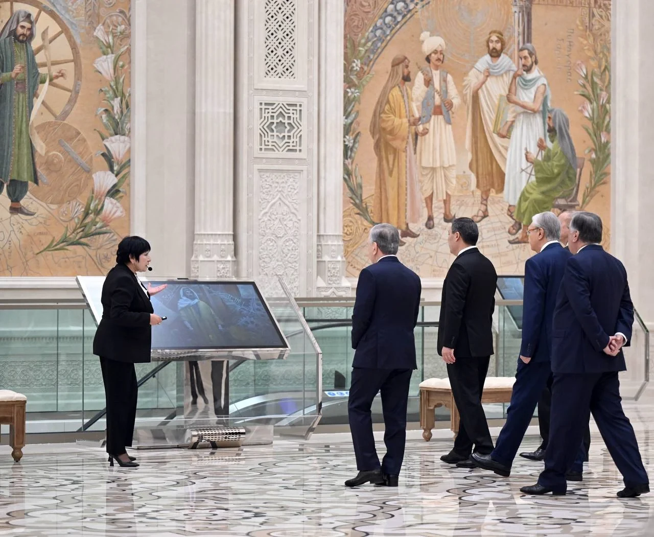 Лидерам государств была представлена обширная коллекция артефактов, рукописей и уникальных экспонатов, которые подчеркивают многовековой вклад народов Центральной Азии в исламскую науку, культуру и просвещение.