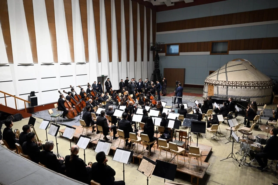 Президент ознакомился с новыми помещениями НТРК, включая рабочие кабинеты, студии для прямых эфиров и звукозаписи, а также зал для записи классической музыки, где он прослушал выступление Государственного академического симфонического оркестра им. А. Джумахматова.