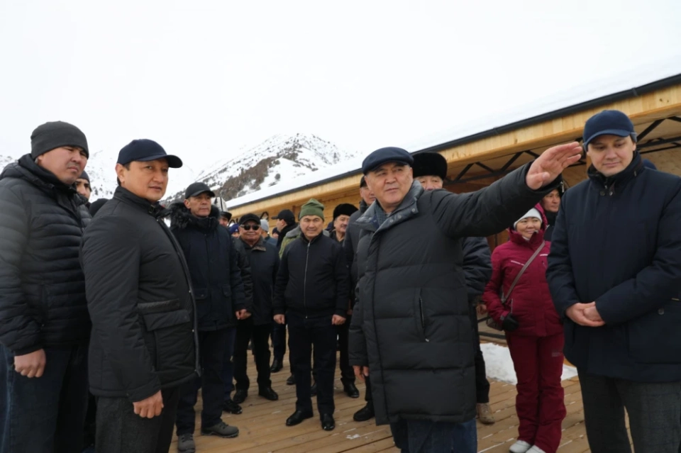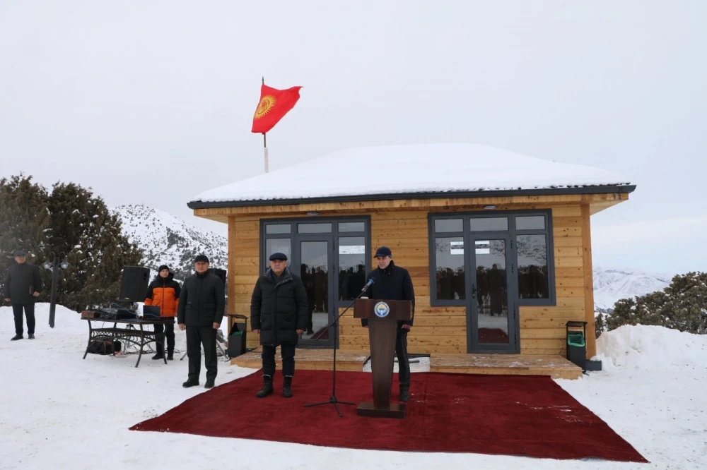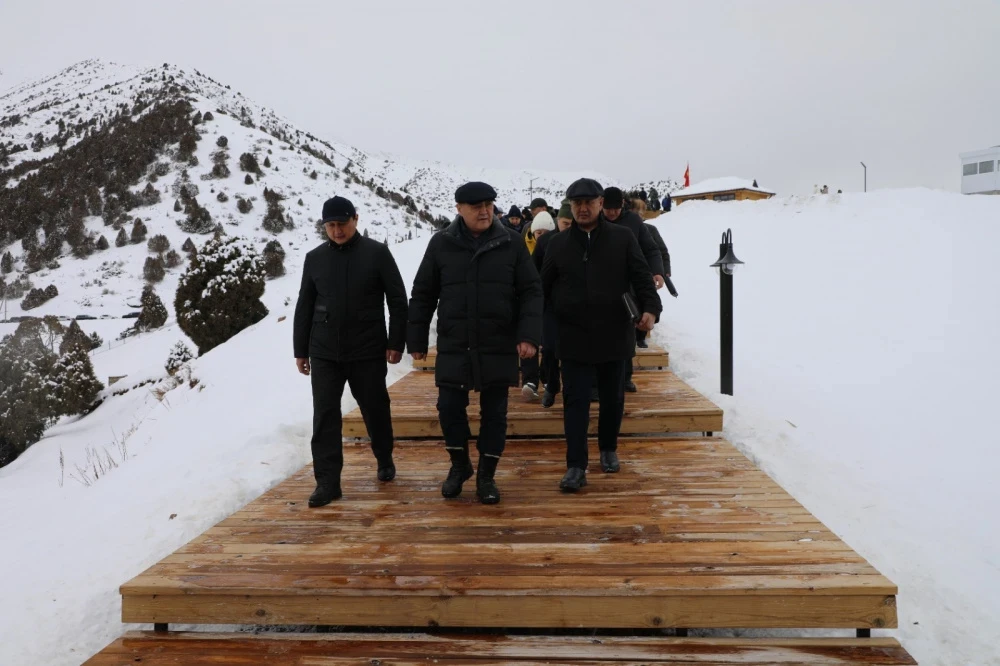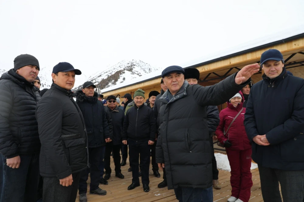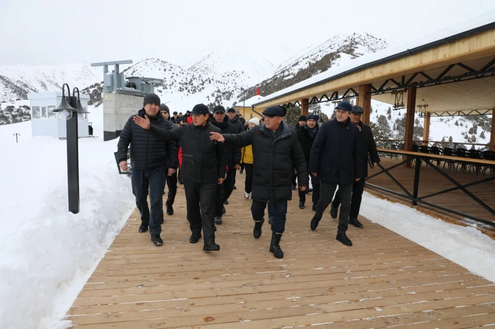 После этого Камчыбек Ташиев перерезал красную ленту и осмотрел территорию "Кызыл-Белес".