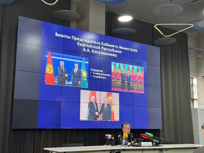 В 2025 году председатель кабинета министров Кыргызстана Адылбек Касымалиев осуществил 19 поездок за границу, как сообщил на пресс-конференции министр иностранных дел Жээнбек Кулубаев. Из этого числа три визита были официальными, а остальные шестнадцать — рабочими. Министр подчеркнул, что, несмотря на непростую международную обстановку, Кыргызстан смог сохранить активность в экономической дипломатии, подписав более десяти соглашений и разработав несколько долгосрочных планов сотрудничества.