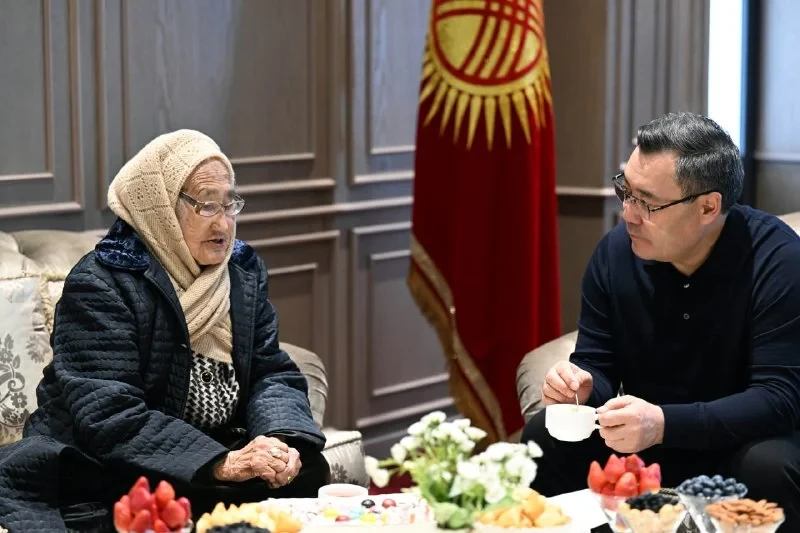 В ходе своей рабочей поездки в Иссык-Кульскую область президент Кыргызстана Садыр Жапаров встретился с Кенешкан Шаменовой, своей первой учительницей.