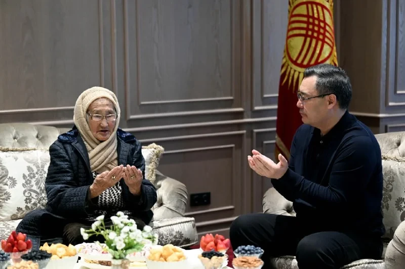 В завершение встречи Кенешкан Шаменова благословила президента, пожелав кыргызскому народу единства, мира и процветания.