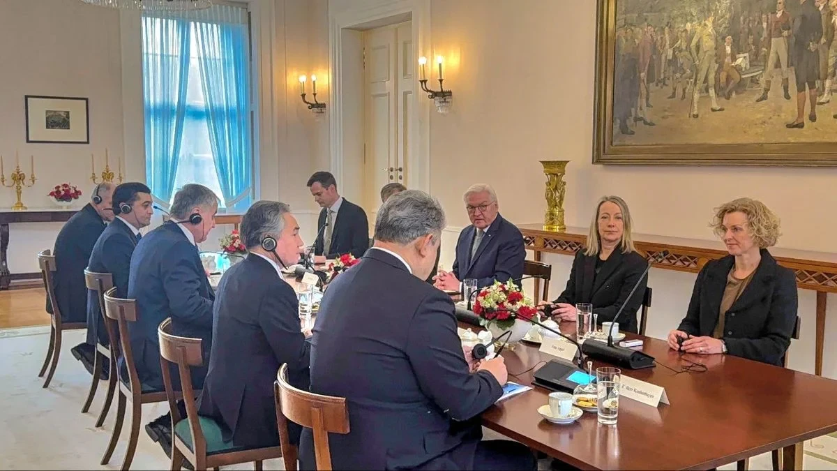 11 февраля 2026 года в Берлине состоялась встреча министра иностранных дел Кыргызстана Жээнбека Кулубаева с федеральным президентом Германии Франком-Вальтером Штайнмайером. Встреча была организована для обсуждения вопросов внешней политики стран Центральной Азии. По информации МИД КР, Кулубаев передал Штайнмайеру приветствия и добрые пожелания от президента Кыргызстана Садыра Жапарова.