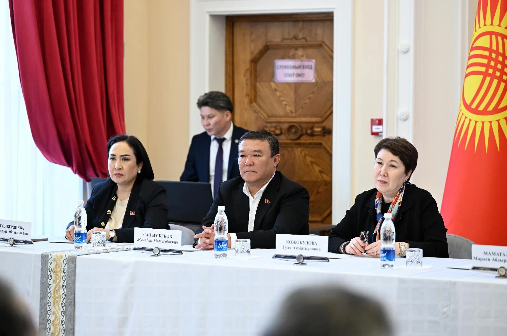 Состав делегации включал депутатов Таланта Мамытова, Гульнару Баатырову, Гулю Кожокулову, Гульнару Акимбаеву, Жумабека Салымбекова, Айгуль Ахмедову, Жылдыз Эгенбердиеву, а также первого заместителя министра цифрового развития и инновационных технологий Нурсултана Кубанова и директора «Кыргызтест» Батму Топоеву-Ставинскую.