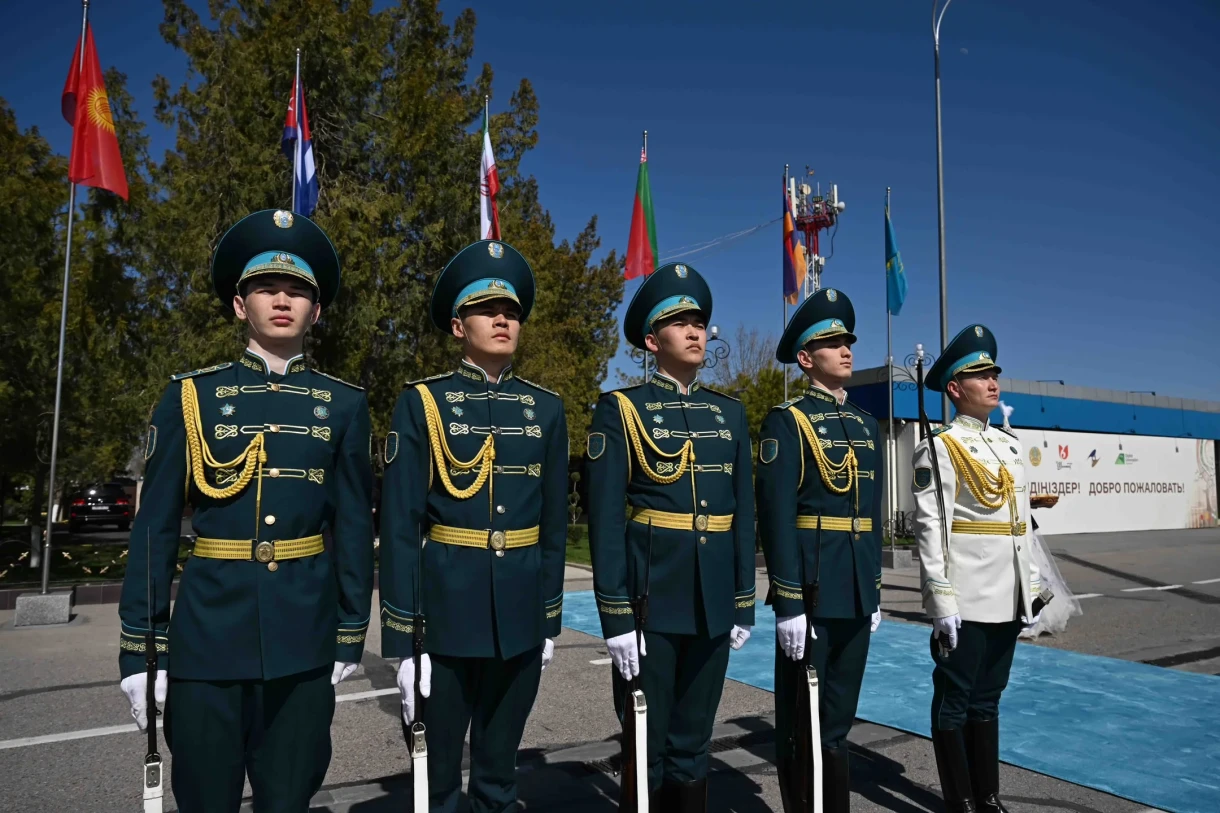 При встрече на территории аэропорта были подняты флаги стран — членов Евразийского экономического союза, а также выстроен почетный караул.